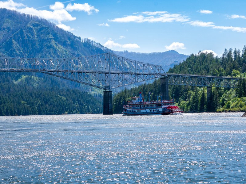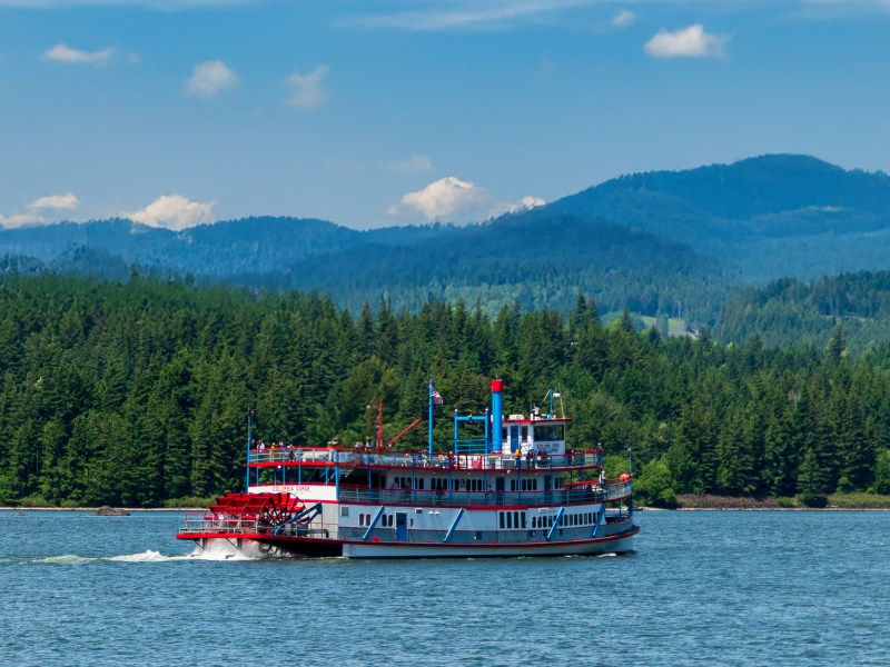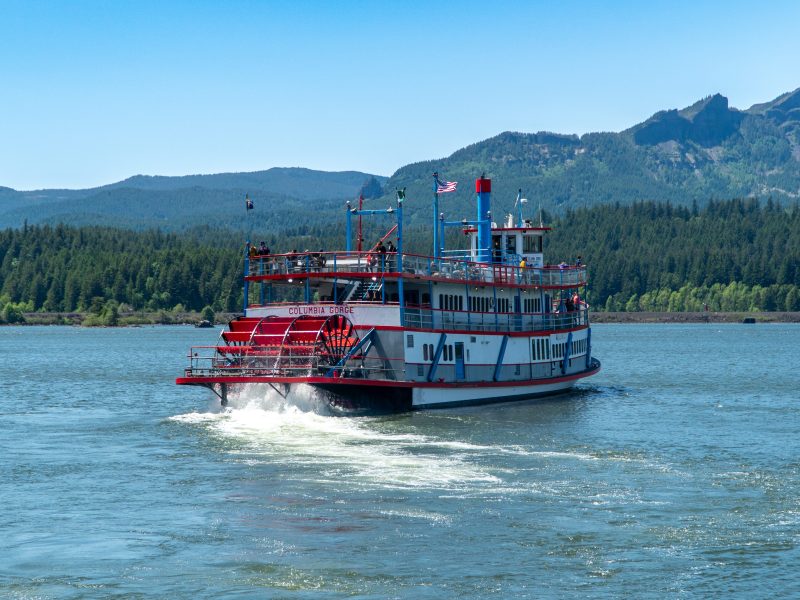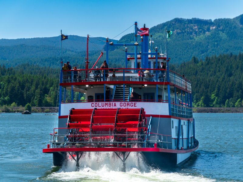 The Sternwheeler Columbia Gorge is an authentic, 145-foot replica of the historic paddle-wheelers that once traveled the Columbia River, offering a unique venue for dining and sightseeing. Home-ported at Cascade Locks Marine Park in Cascade Locks, Oregon (299 SW Portage Rd.), the vessel features multiple decks, including two enclosed decks and one open-air deck, providing panoramic views of the Columbia River Gorge. The facility is ADA accessible on the main deck, with ramps for easy boarding and accessible restrooms. Onboard amenities include two full-service bars offering drinks, snacks, and pub fare. The Sternwheeler offers a variety of public cruise options, such as Expedition Cruise Sightseeing, Sunday Brunch Cruises, Dinner Cruises, Lockage Tours through the Bonneville Dam, and is also available for Private Charters for special events. Click the Button Below to Email Cam About a Private Charter